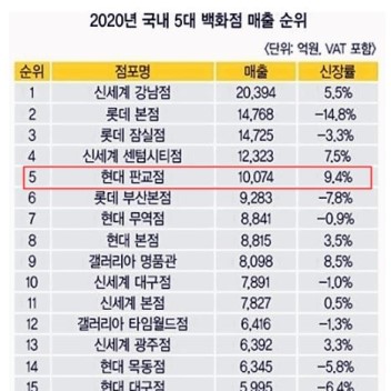 * 2015년 8월 오픈 연 매출 1조원 돌파 백화점!
